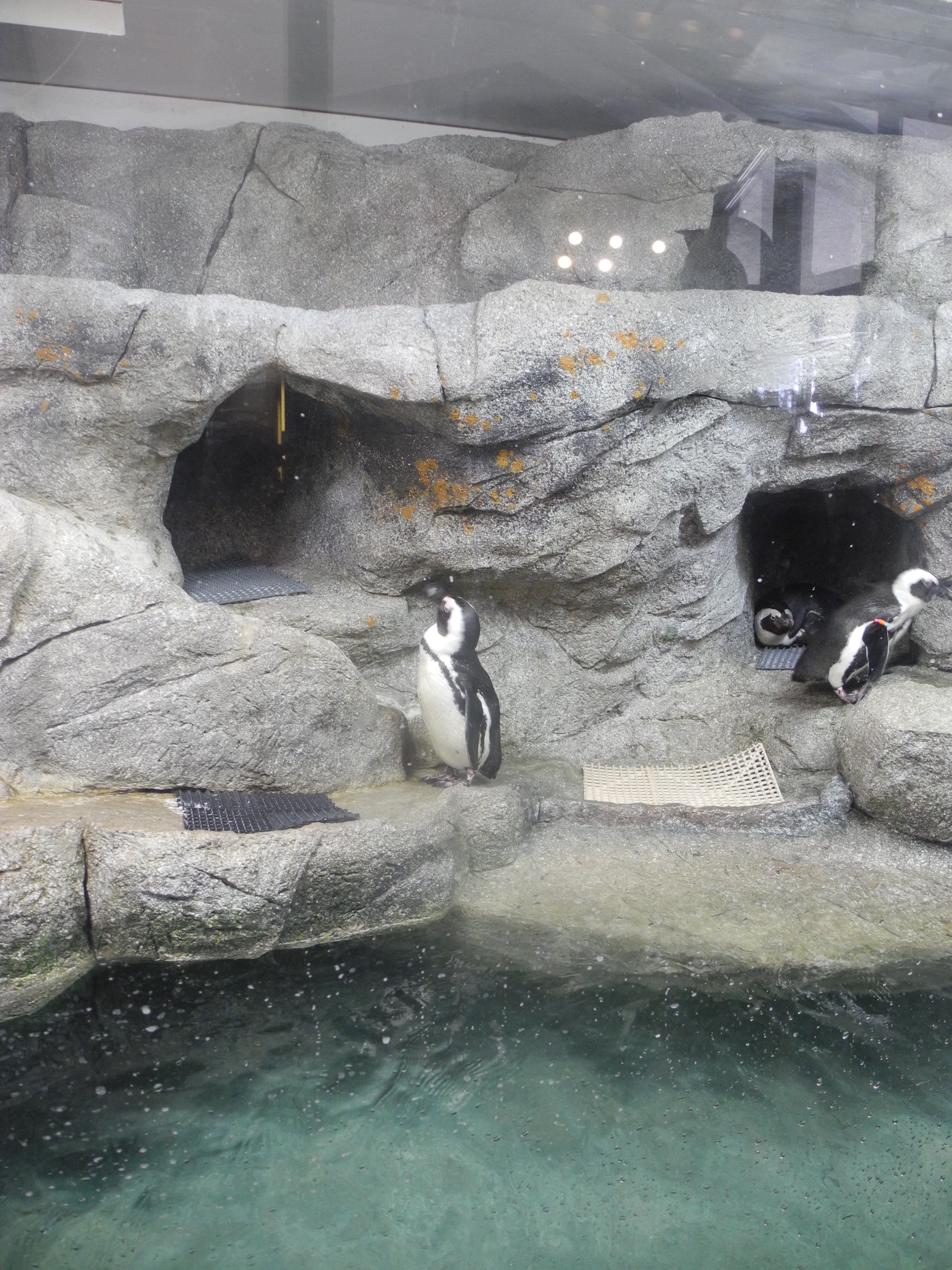 finally we got to see the penguins… the three of them were in a small tank located in the old gift shop… they were all wearing cool jewellery… after a brief look we walked through the penguin gift shop and headed home…