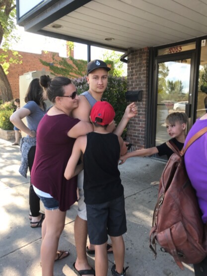 eventually we all got our ice cream and sat on a bench outside to enjoy our treats…