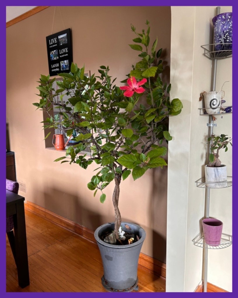yesterday I brought the hibiscusinside…. excited to see it has buds on it;-)…