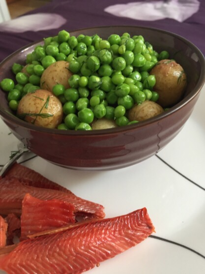 after a nap and a few chores, ended the day with a fabulous dinner of smoked goldeye, with tiny new potatoes, peas and dill… yum…