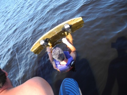 then it was my turn… they had to lower me into the water once the boots were on my feet…