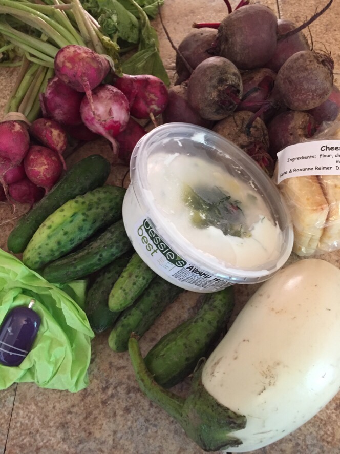 we went to the market garden and picked up some lovely fresh veggies… we got corn on the cob, peas, yellow and green beans, green onions, garlic, tiny and medium sized potatoes, cauliflower and radishes…