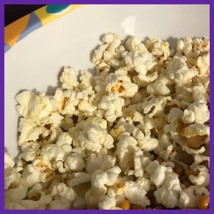 I’m now popping the popcorn in a glass measuring bowl and using a silicone cover… still trying to get just the right number of kernels into the bowl before putting it into the microwave…