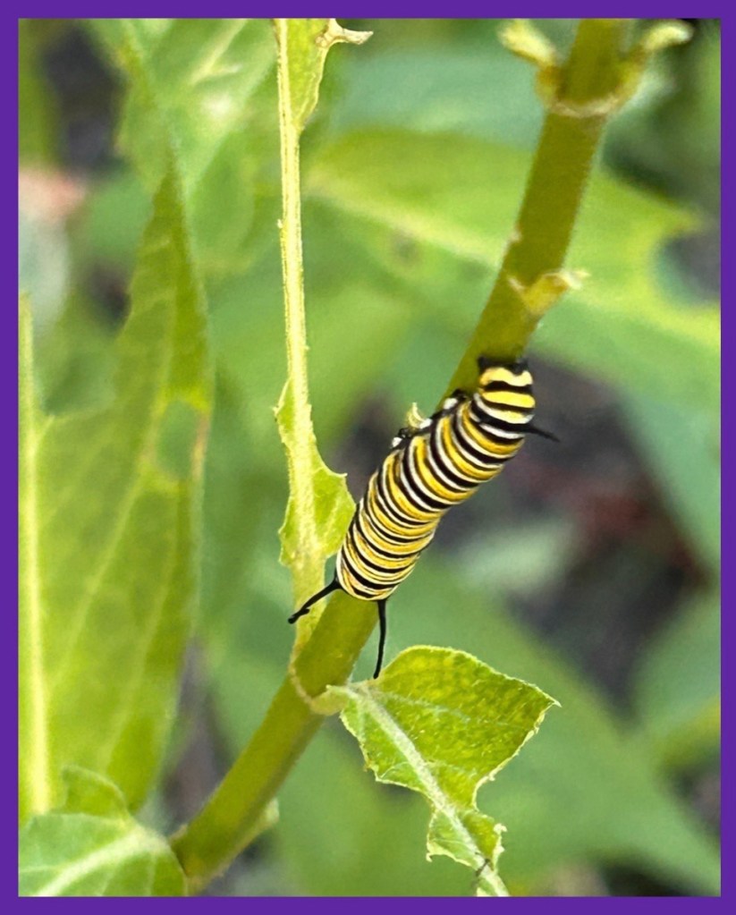 for the last few days, in the afternoon, I’ve enjoyed watching a monarch butterfly dip and flit through the garden, landing on the various milkweed plants to enjoy some nectar and maybe lay some eggs…