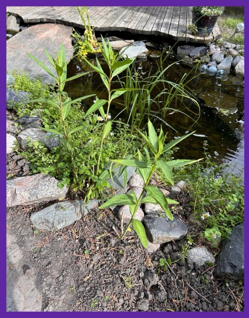 there were none on the ones from last year which were located around the edge of the pond… these were the ones that I planted in a spot where I could see and photograph any butterflies, eggs and caterpillars that came along, lol…