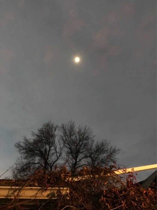 took a picture of the moon while I was waiting for the fill and then when I was home and looked out the window, I noticed the star/planet just below and to the left…