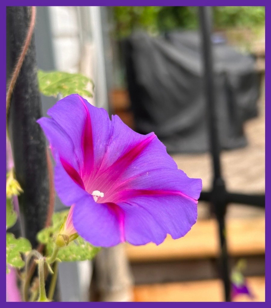 I think I like it in this new spot and am hoping it will fill up with the morning glories and that the dahlia will grow tall and produce flowers…