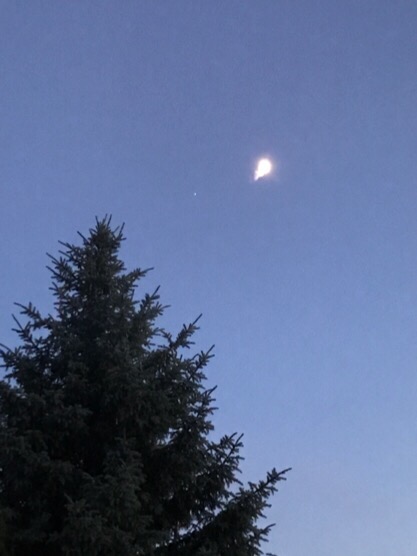 took a picture of the moon while I was waiting for the fill and then when I was home and looked out the window, I noticed the star/planet just below and to the left…