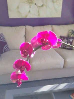 tonight I took a moment to check on my orchid and have a good look at it… it has more blooms and I got a nice shot of it with the fish tank in the background…