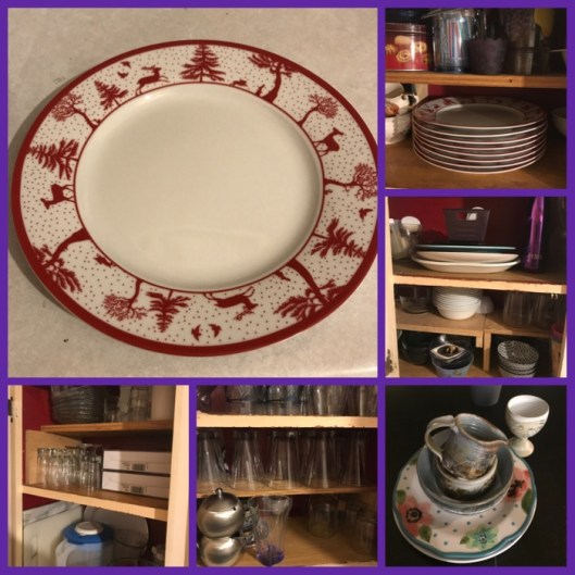 big girl pants, books, bookshelf, Christmas, cupboard, dishes, give away, place, plates, tidy, widow