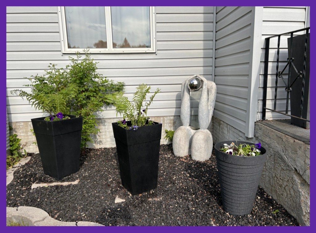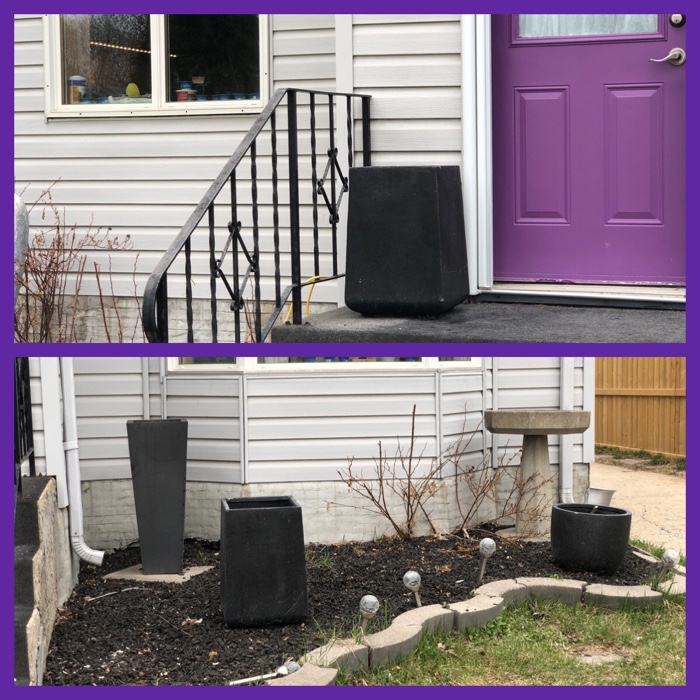 the vegetables in the gray planter are coming along, although the squash seed has not sprouted yet…