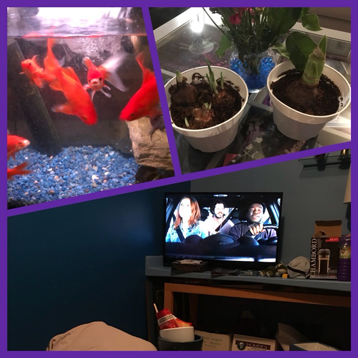 tonight I took a few pictures… the plants, the fish, and the view from my seat on the couch…