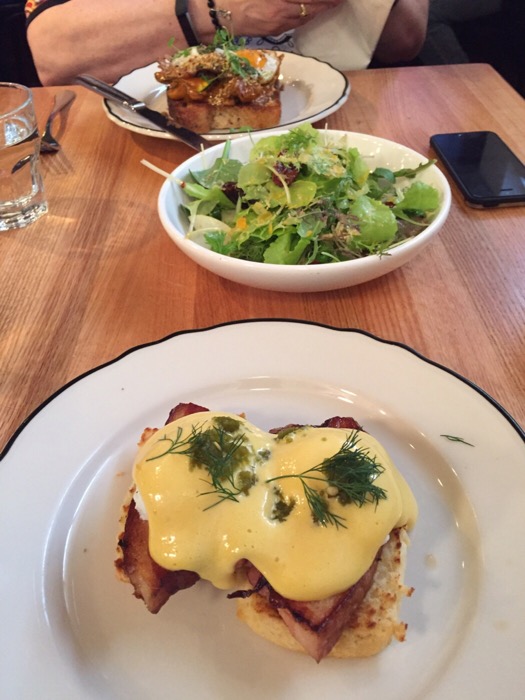 lunch was at Clementine’s in the Exchange District… had a very tasty Braised Bacon Benedict (Maple Sabayon, Dill, Poached Eggs, Cheddar Biscuit) and we shared a Braman’s Greens, Sweet Cayenne Walnuts, Smoked Dates, Apples, Mimolette Cheese, House Dressing salad…