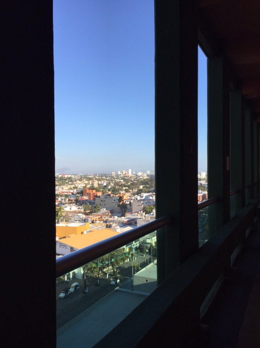this is the hallway outside our room… you can see a busy part of the city through the open portion of the windows…