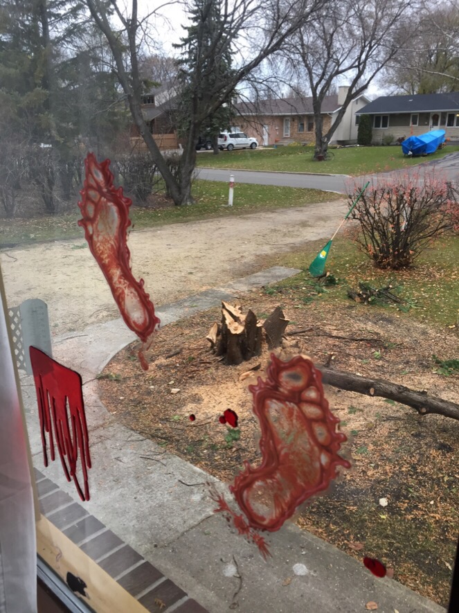 ignore the bloody footprints, lol… so much brighter with the cedar tree down…
