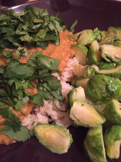 enjoyed it with brown basmati rice, cilantro and brussel sprouts on the side…