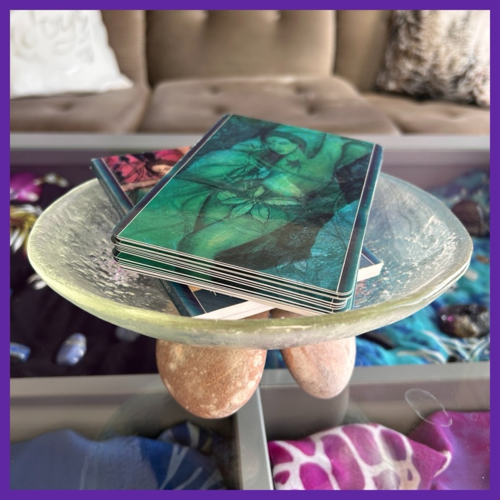 looks good and I topped it off with my rock bowl filled with my Crystal Oracle cards;-)…