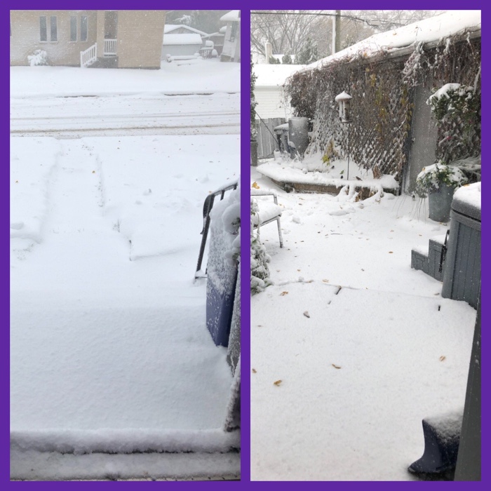 this morning the snowploughs came down the street and filled in the sidewalk and left a bit of snow in the driveway…