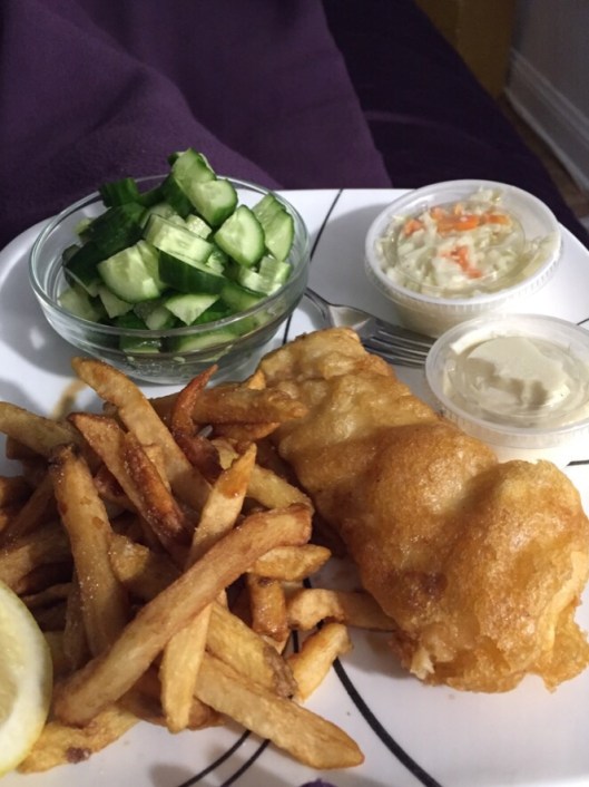 so tonight I treated myself to fish and chips… been craving them for a couple of weeks…
