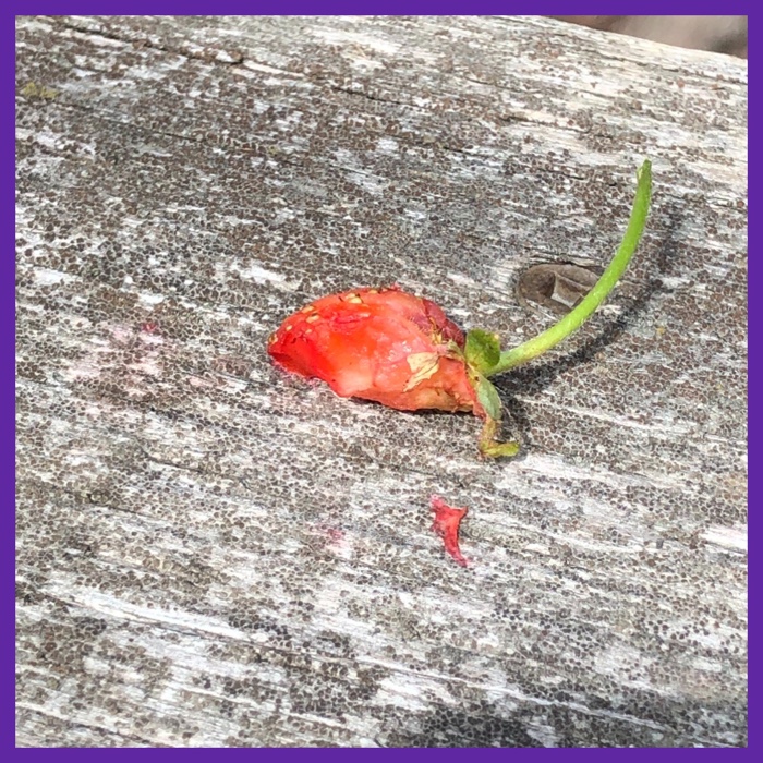 big girl pants, birds, blessed, discourage, food, fresh, garden, happy, moments, nature, plants, snack, squirrels, strawberry, strawberry plant, treat, weather, widow