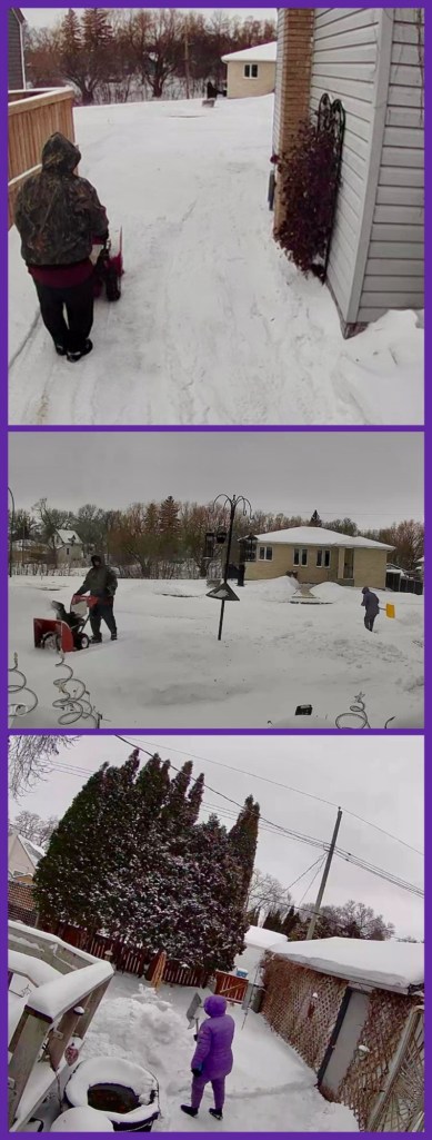 he came over and tried to drive Indi up the driveway… as he was trying, the first neighbour came out to help… with a number of tries, and two of us pushing, Indi made it to the flat section of the driveway… thank goodness for winter tires…