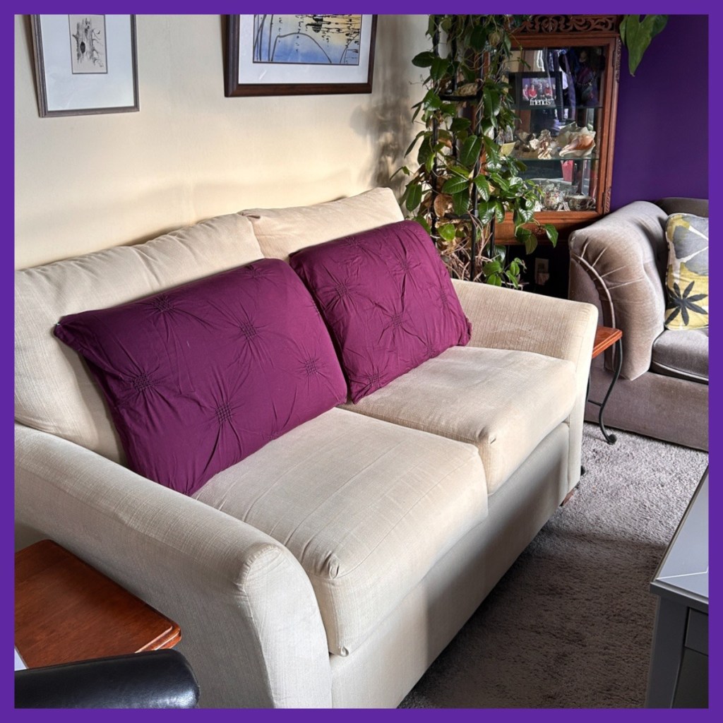 the reason for the covering involves two pillows I have put on the sofa so that it isn’t so deep…