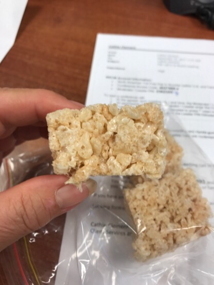 this morning a colleague brought me homemade Rice Krispie squares… she remembered, from one of our conversations, that this is one of my favourite treats… I had shared how my sister-in-law made a 25 with Rice Krispie cake and those little silver dragees for our twenty fifth anniversary…
