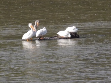 the pelicans were sitting on the edge of the little island as we walked across the bridge to the Park… first time I’ve seen them this year…