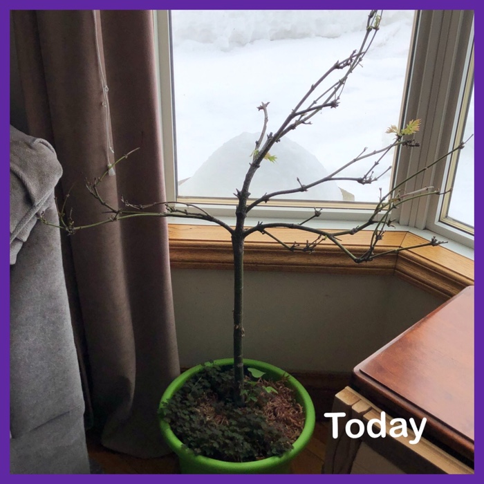 yesterday I put up a photo on Instagram that showed my Japanese Maple just starting to leaf out… this picture below came up in my Google Photos today showing the same tree two years ago… made me laugh because it is so different, lol…