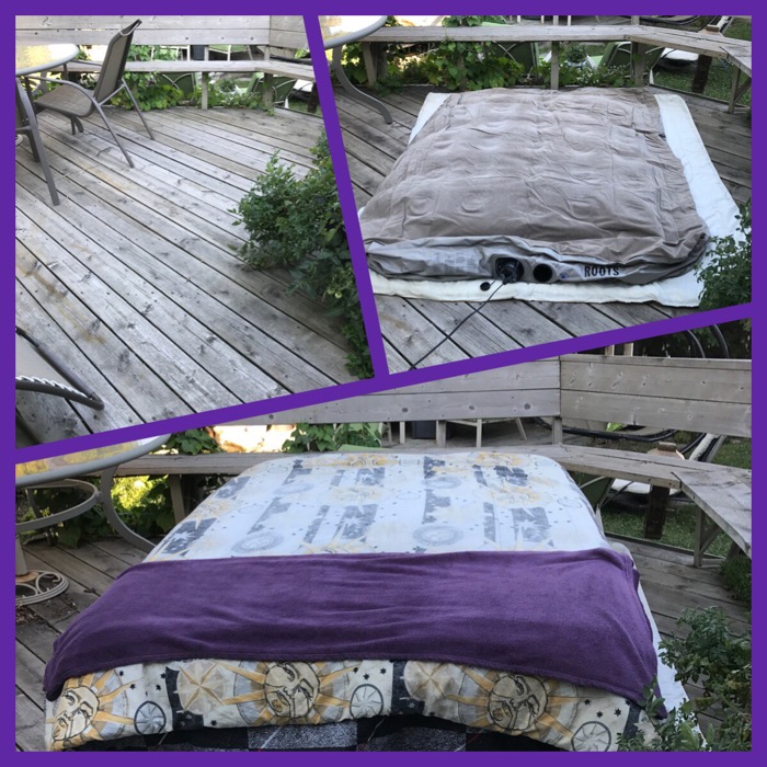 on Friday evening I brought the lounger onto the deck and put a number of comforters on it…