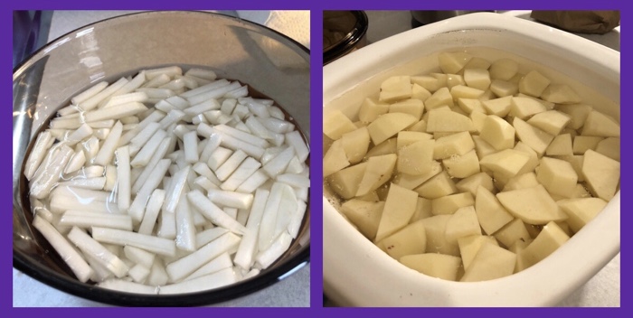 a turnip was peeled, cut, boiled (so that the water would be available for the chicken gravy), and mashed…