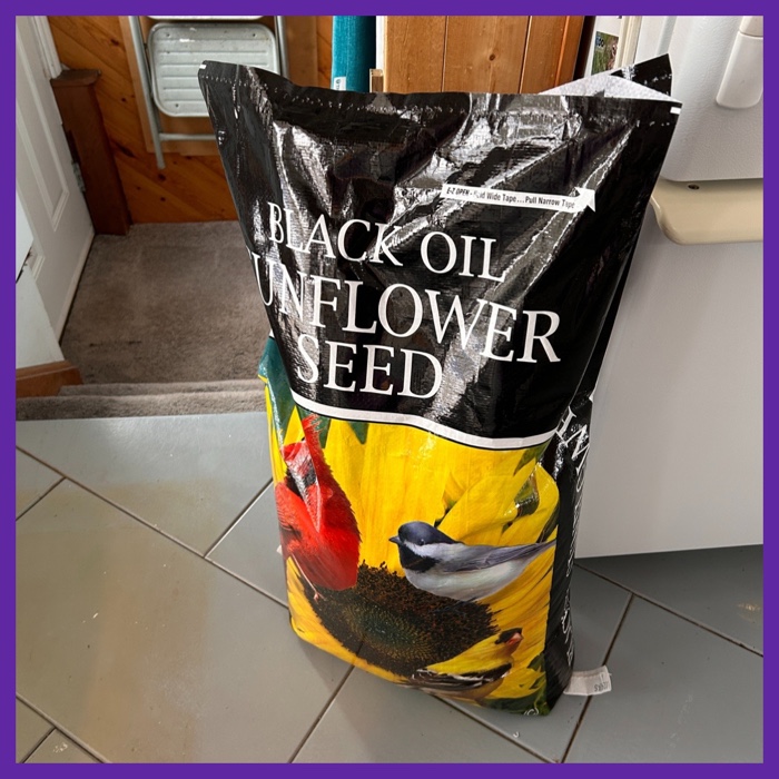 the fifty pound bag of birdseed was recently delivered in the evening…