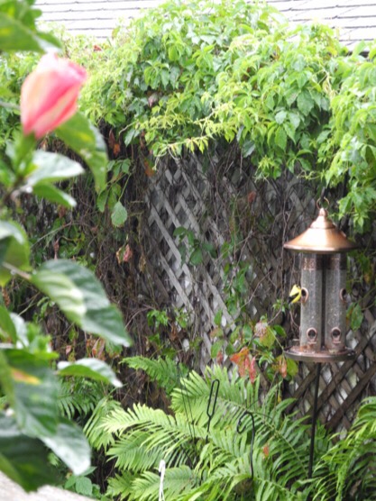 another serendipitous moment when I peeked out the patio doors and caught sight of this beautiful goldfinch having breakfast at the feeder, on this overcast/rainy day…