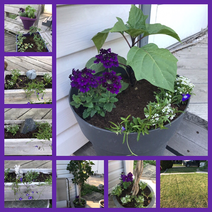 the garden is taking shape… we cleaned out one flower bed, filled fourteen planters, mowed the front and back, brought out the hibiscus and put everything we had used away… whew…