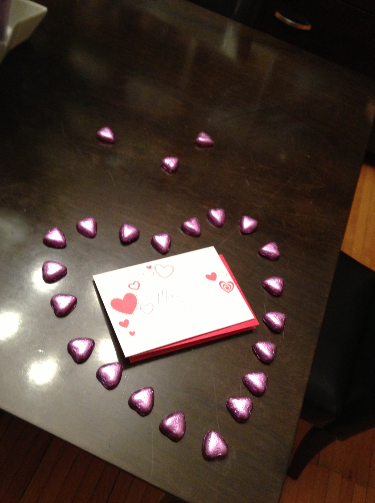 as I sit here writing, and drinking a small glass of Baileys, I can look over and see the chocolate hearts, which I have not yet moved, lol… pretty great kids…