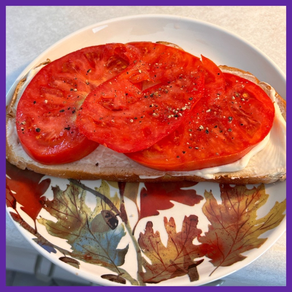 then I cut up the gorgeous large tomato that a friend had given me which was perfectly ripe…