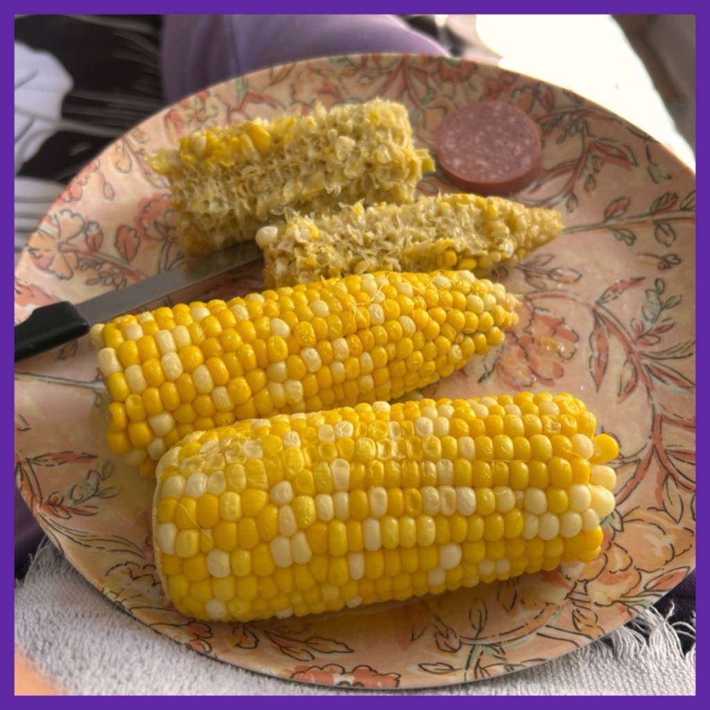 when I arrived home I took out a few pieces of bacon from the freezer and microwaved them… I like crisp bacon;-)… when bacon arrives home, two pieces are folded, two of them put into a ziplock bag, and into the freezer so it is easy to get pieces out to use when needed…