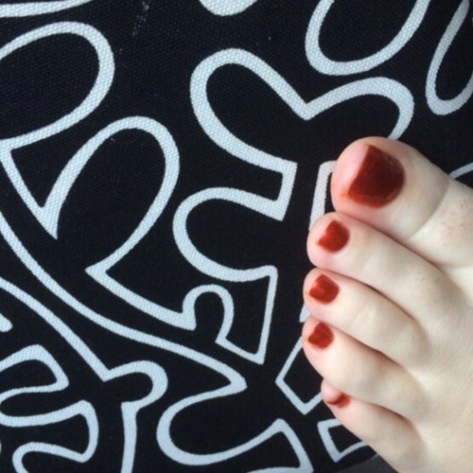 last week I had a pedicure and as I stepped into the car, I scuffed my big toe… didn’t have time to go back and get it fixed, until this morning…