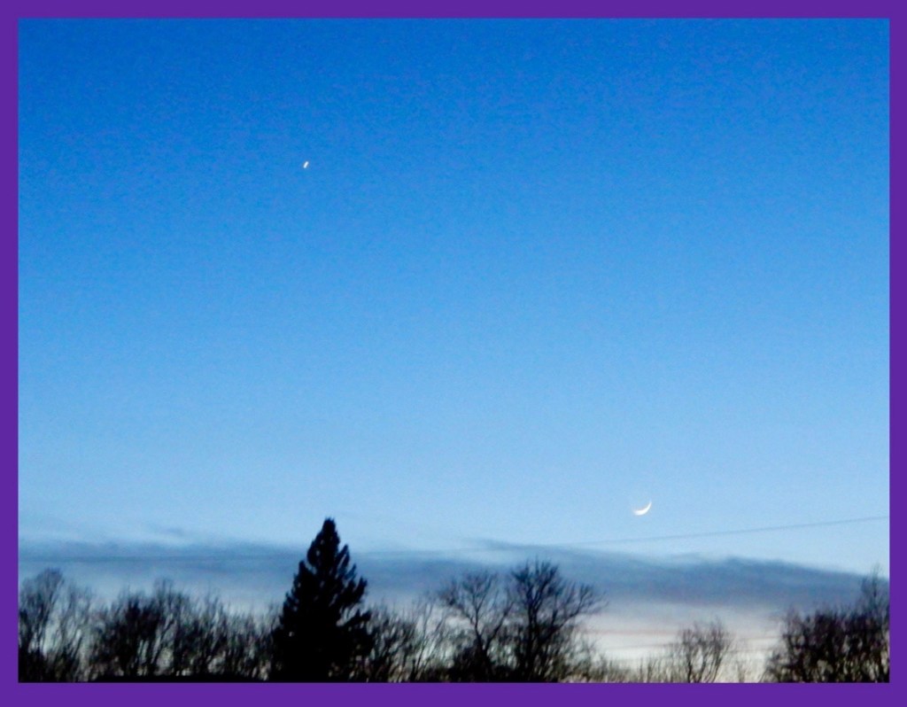 last night I spent a few minutes at the front door trying to get a photo of the tiny sliver of moon and Jupiter…