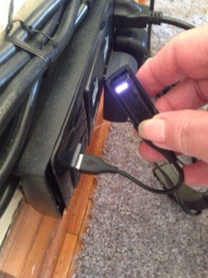 when my Ottawa kids were here last June, my son-in-law picked up a power bar with USB ports in it… he attached it to the wall by the couch in the living room and tied up all the cord… very tidy…