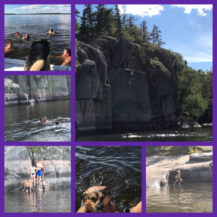 picnic on board and we toured around half the lake, admiring the cottages… then we swam off the boat…