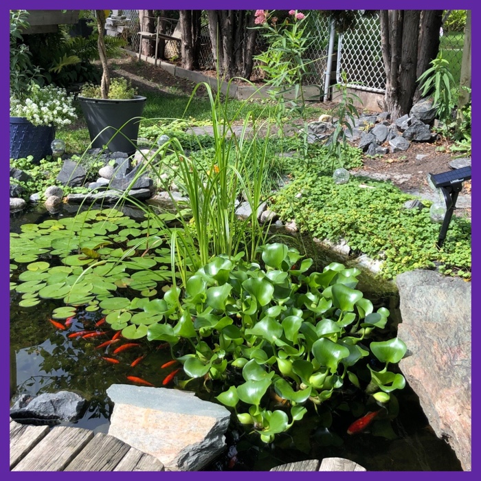 banned, blessed, fun, garden, goldfish, grandson, memories, Parrot, parrot feather, pond, shubunkins, time, water hyacinth, water lettuce, water lilies