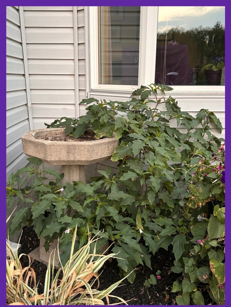 it is a bit smaller than the white pompom-looking ones, but stands out in all its pink and purple hues…