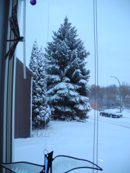 yesterday morning the world was covered with a thick blanket of snow… kept going from window to window looking out at the wonderful views…