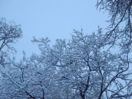 the snow clung to the tree branches and bushes…