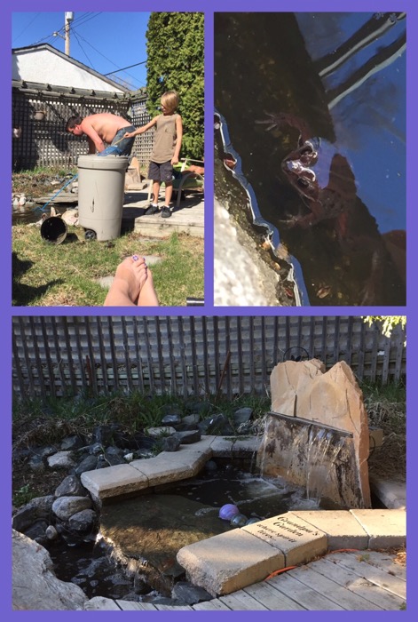 kids came over and my son-in-law cleaned the leaves out of the pond, with a little help from the younger boys… they found a frog, woohoo, which always makes me happy… maybe it has been making the odd noise I’ve been hearing when I’ve been in the hot tub over the last week or so…