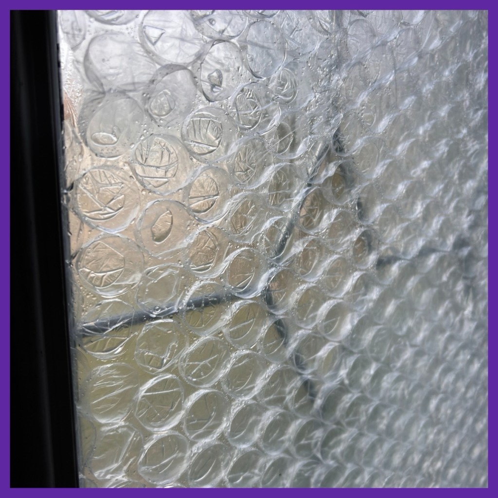 first I removed the curtain that had been hanging over the window and replaced it with bubble wrap to act as insulation;-)… that was fun and it is just held there with water…