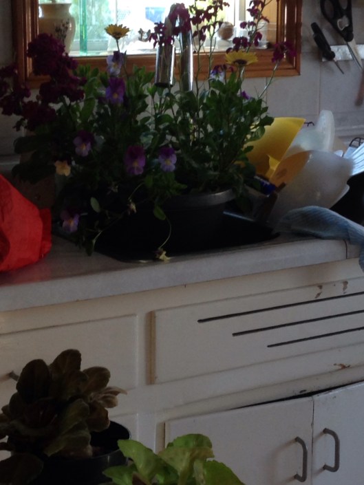 spent some time this morning removing the sheets and hanging the baskets back up… they were a little sad to have been covered up, but they were all alive, lol…