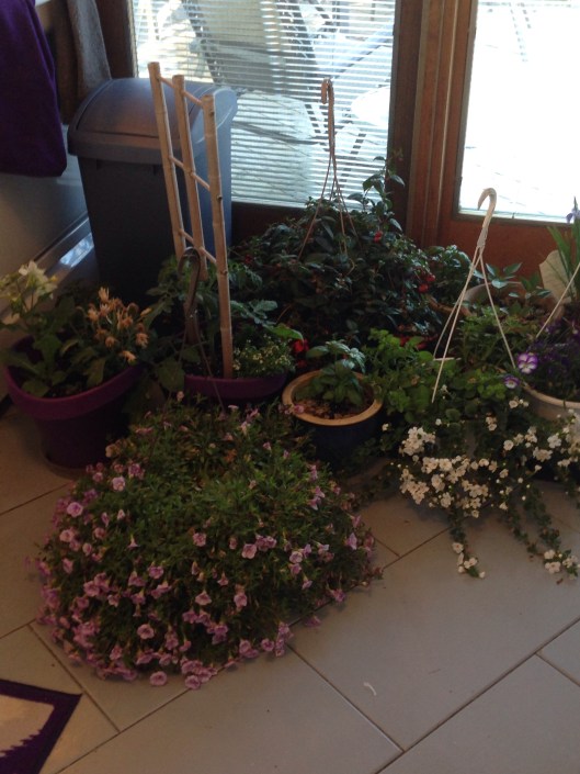 since then, I’ve been bringing in plants and covering up the ones left outside, because the temperature is supposed to go below zero tonight…